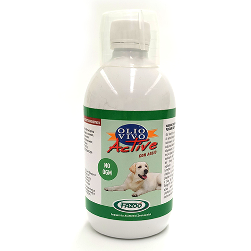 Olio Vivo ACTIVE un prodotto naturale no OGM di alta qualità, ricco di vitamine, minerali, oligoelementi ed acidi grassi polinsaturi, utile per mantenere in salute il vostro cane e gatto.