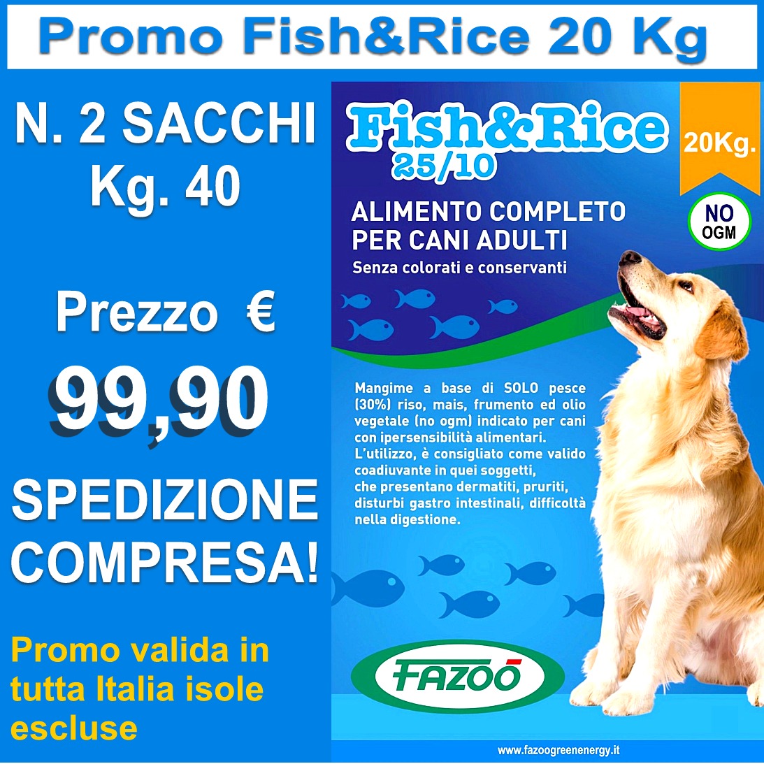 PROMO FISH&RICE MANGIME COMPLETO PER CANI 2 SACCHI KG 20